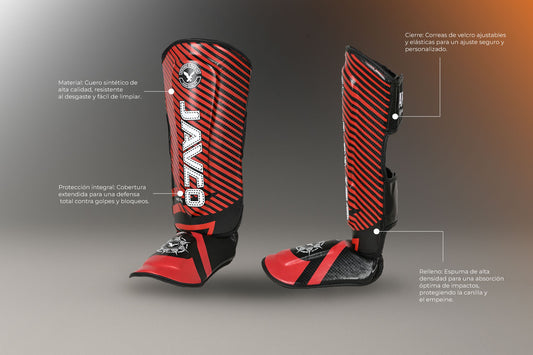 CANILLERA CON EMPEINERA JAVCO KICK BOXING & MUAY THAI ROJO BLANCO