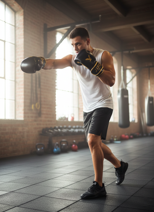 GUANTE DE BOX JAVCO- KICKBOXING-MUAY THAI NEGRO BLANCO