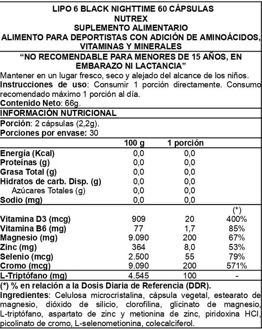 NUTREX LIPO 6 NIGHTTIME 60 CAPSULAS